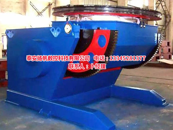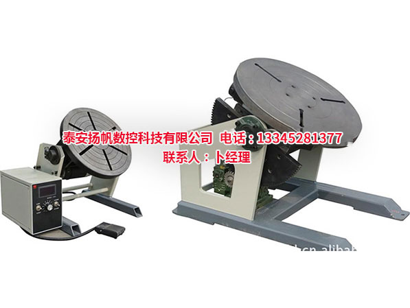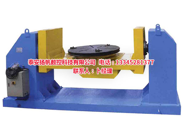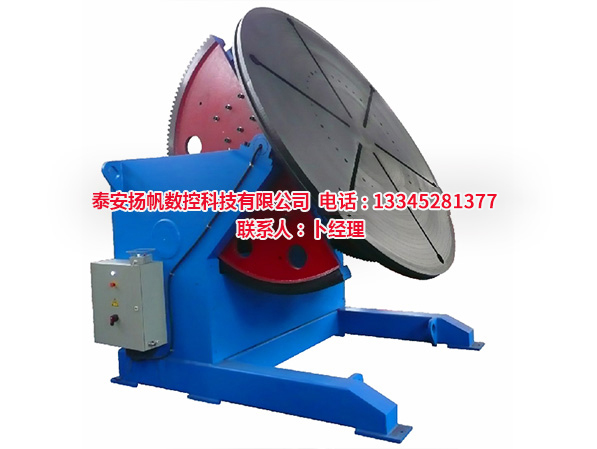 焊接變位機(jī)一般由工作臺(tái)回轉(zhuǎn)機(jī)構(gòu)和翻轉(zhuǎn)機(jī)構(gòu)組成,變位機(jī)通過(guò)工作臺(tái)的升降,翻轉(zhuǎn)和回轉(zhuǎn)使固定在工作臺(tái)上的工件達(dá)到所需的焊接,裝配角度,變位機(jī)工作臺(tái)回轉(zhuǎn)為變頻無(wú)級(jí)調(diào)速,可得到滿意的焊接速度